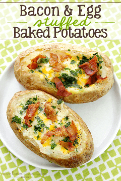 ¡Las papas al horno obtienen una actualización fácil y deliciosa con huevos, tocino y queso! ¡Estas papas al horno rellenas de tocino y huevo son excelentes para el desayuno o la cena!
