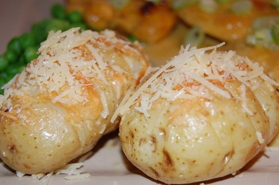 Retire del horno y espolvoree un poco más de queso parmesano en cada papa antes de servir.