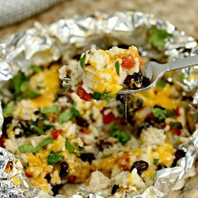 ES Paquete de comida de enchilada de papel de aluminio fácil Es perfecto para las noches ocupadas. La limpieza es un juego de niños cuando todo se cocina en una de estas prácticas bolsas de aluminio. ¡El pollo, el queso y el arroz se combinan para una comida llena de sabor! ¡Seguro que será un éxito para toda la familia!