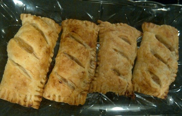 Coloque la mezcla de manzana en forma rectangular sobre la masa, dejando espacio para doblar.