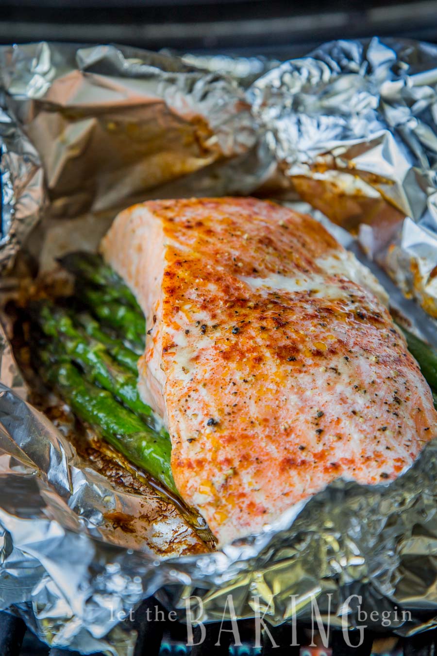 Recientemente adquirimos un pequeña parrilla de gas y ahora estoy buscando excusas para usarlo. Al llegar a casa con un buen filete de salmón y algunas libras de espárragos, sabía exactamente qué hacer con él. Estas envolturas de salmón y espárragos son rápidas, fáciles y deliciosas. ¿Qué necesito más?