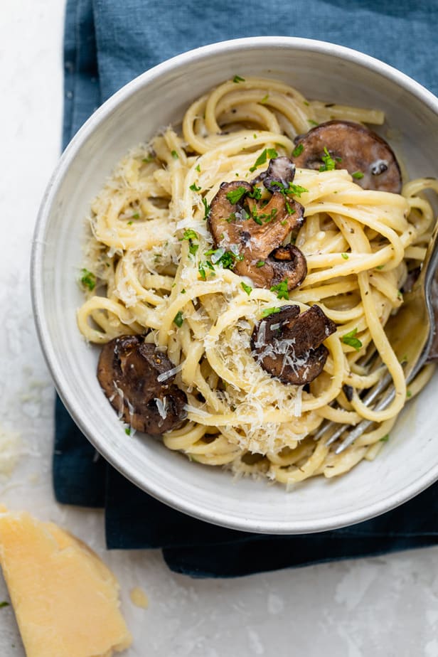 Sé que no todos son fanáticos de los hongos, pero para los fanáticos de los hongos, este plato cremoso de fideos con ajo está lleno de mucho sabor sin mucho esfuerzo o ingredientes. ¡Se junta tan rápido y definitivamente es uno que nos gusta repetir aquí!