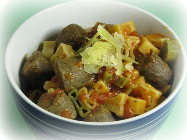 Cuece la pasta en agua hirviendo con sal. Escurrir y volver a la sartén. Agregue la mezcla de salchichas a los fideos y revuelva para combinar.