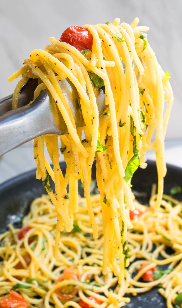Fideos de pollo con albahaca y tomate– Agregue pollo balsámico a la parrilla o en cubos o este Chicken Bruschetta (una olla) para resaltar los sabores italianos en esta comida. También puedes usar pollo asado.