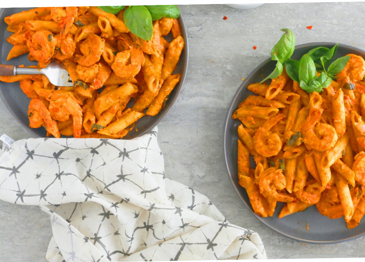 ¡Esta pasta instantánea de camarones con salsa de crema de tomate será tu nueva receta para la cena!