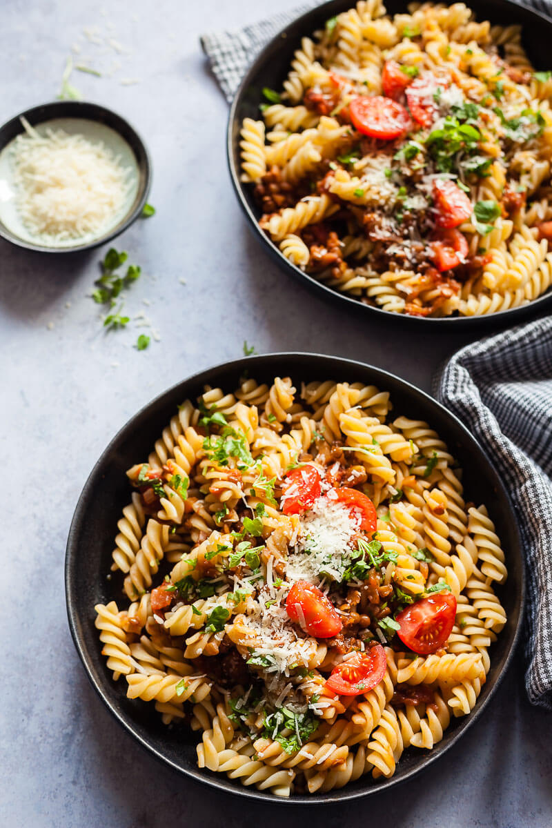 Ahora, la textura puede parecerse un poco a la salsa de carne real, pero el sabor es casi perfecto. ¡Esta pasta boloñesa vegana de lentejas está buenísima! ¡Sólo tienes que intentarlo!