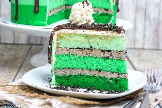 ¡Este hermoso pastel de chocolate con menta es un pastel en capas perfecto para los fanáticos de St. Patrick u Oreo! ¡Una de nuestras recetas navideñas favoritas!