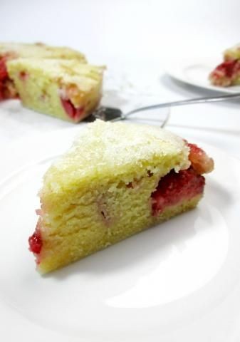 Doble suavemente las fresas divididas en la masa, transfiera la masa a la fuente preparada, nivele la masa con una espátula y espolvoree 1/4 taza de azúcar uniformemente encima.