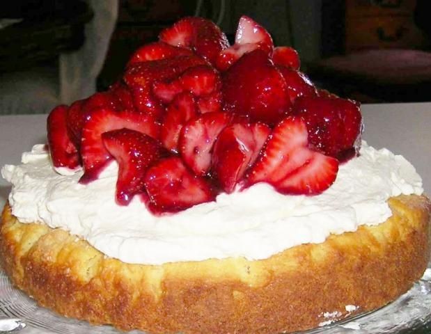Extender la nata sobre la tarta frÃa y batir las fresas por encima.