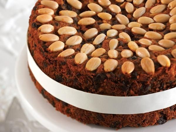 Decorar con almendras fileteadas. Cocine durante 3-3½ horas o hasta que el palillo insertado en el centro esté limpio. Ensartar profundamente en la parte superior del pastel con un pincho delgado. Ponga el brandy extra en el pastel. Deje el pastel tibio en la caja y envuélvalo en papel de aluminio, luego enfríelo en un paño de cocina grueso durante la noche.