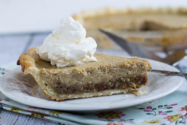 No hay mucha información disponible sobre el origen de Jefferson Davis Pie. Su historia parece haber sido olvidada junto con el pastel. Si buscas en Google Jefferson Davis Pie, verás recetas con merengue, sin merengue y algunas sin pasas, dátiles y nueces. Estoy bien con la gota de merengue, pero parece que son las frutas secas y las nueces las que hacen que este pastel sea especial.