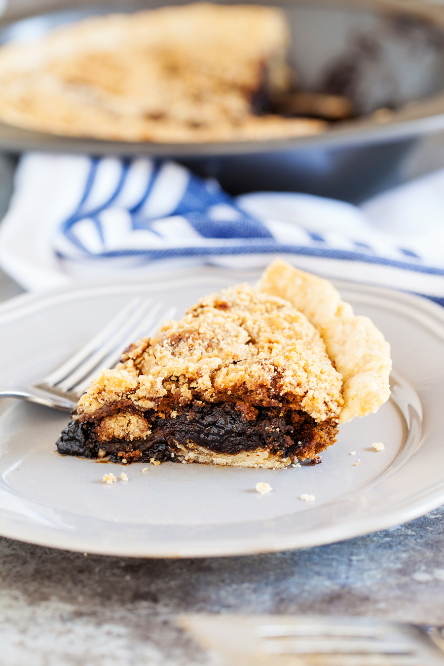 Shoofly Pie es un pastel espeso y dulce a base de melaza que se originó en la década de 1880 como base para el desayuno.