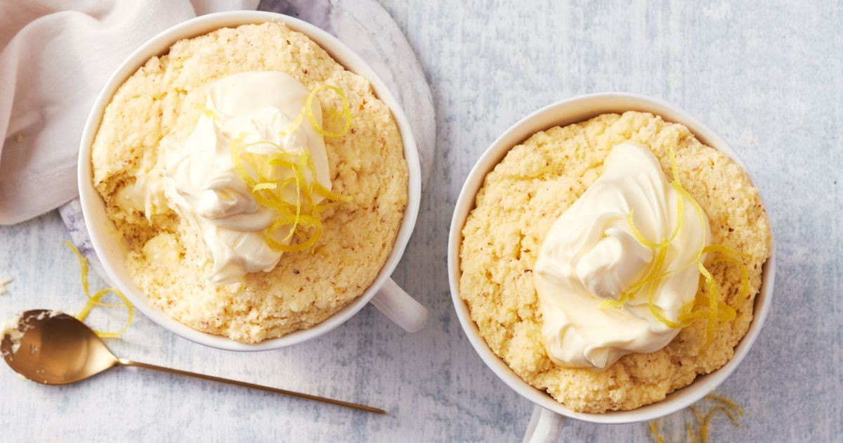 Transfiera la mezcla a una taza o taza resistente al calor de 250 ml (1 taza) y alise la superficie. Microondas a alta temperatura durante 2 minutos. Ponga a un lado durante 30 segundos. Cubra con una cucharada de mascarpone y ralladura de lim贸n adicional, si se usa, para servir.