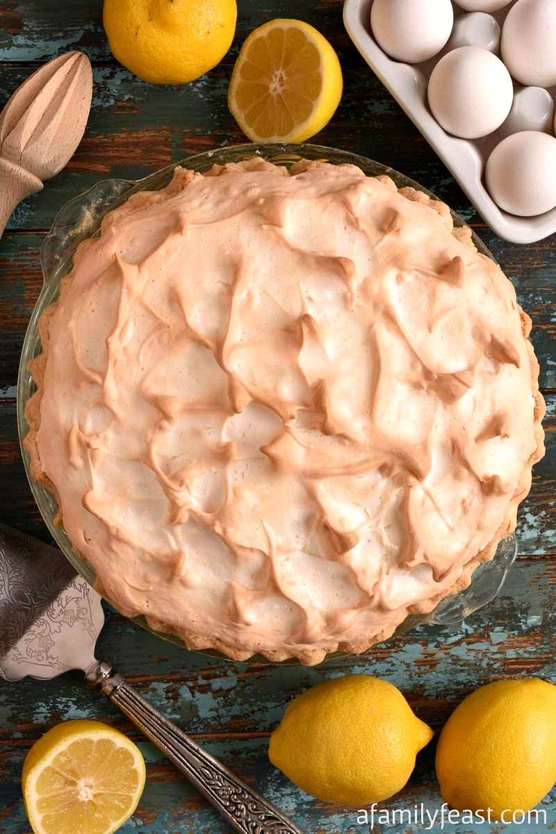 Verter el merengue sobre el relleno de limón empezando por los bordes y trabajando hacia el centro, batiendo el bizcocho por encima. Luego tome la parte posterior de una cucharada y presione y suelte sobre el merengue para crear pequeñas tapas decorativas.