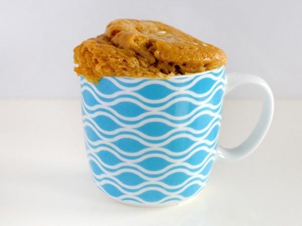 Coloca la taza en el microondas y cocina por 1 minuto a fuego medio. El budín debe ser alto y aún ligeramente pegajoso en el medio. Si todavía no está cocinado a su gusto, cocine en el microondas otros 10 segundos.