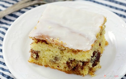 Con reminiscencias del pastel de sándwich, este pastel de pan de jengibre es una mezcla de pastel amarillo mezclada con algunos ingredientes, ¡incluida una deliciosa capa de canela y nueces!