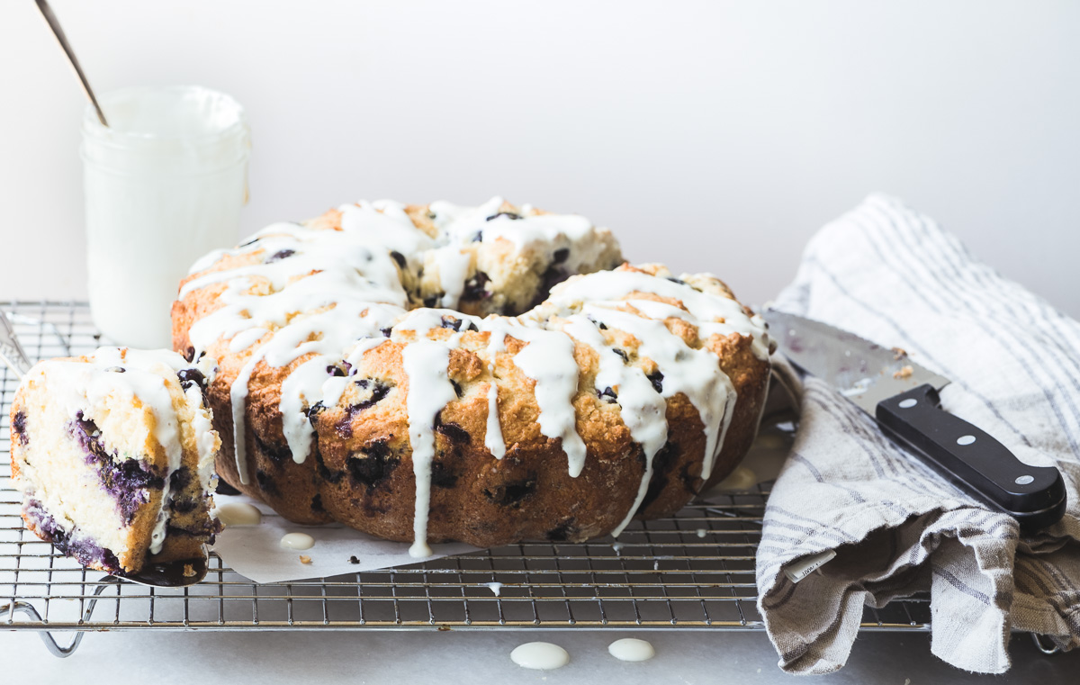 My Blueberry Muffin Cake with a Sweet Yogurt Glaze es un brebaje delicioso y oficialmente la mejor manera de asombrar a una multitud de brunch, saludar a los invitados durante la noche o disfrutar de un fin de semana relajado. Este pastel de café relleno de arándanos es básicamente un permiso para comer postre en el desayuno.