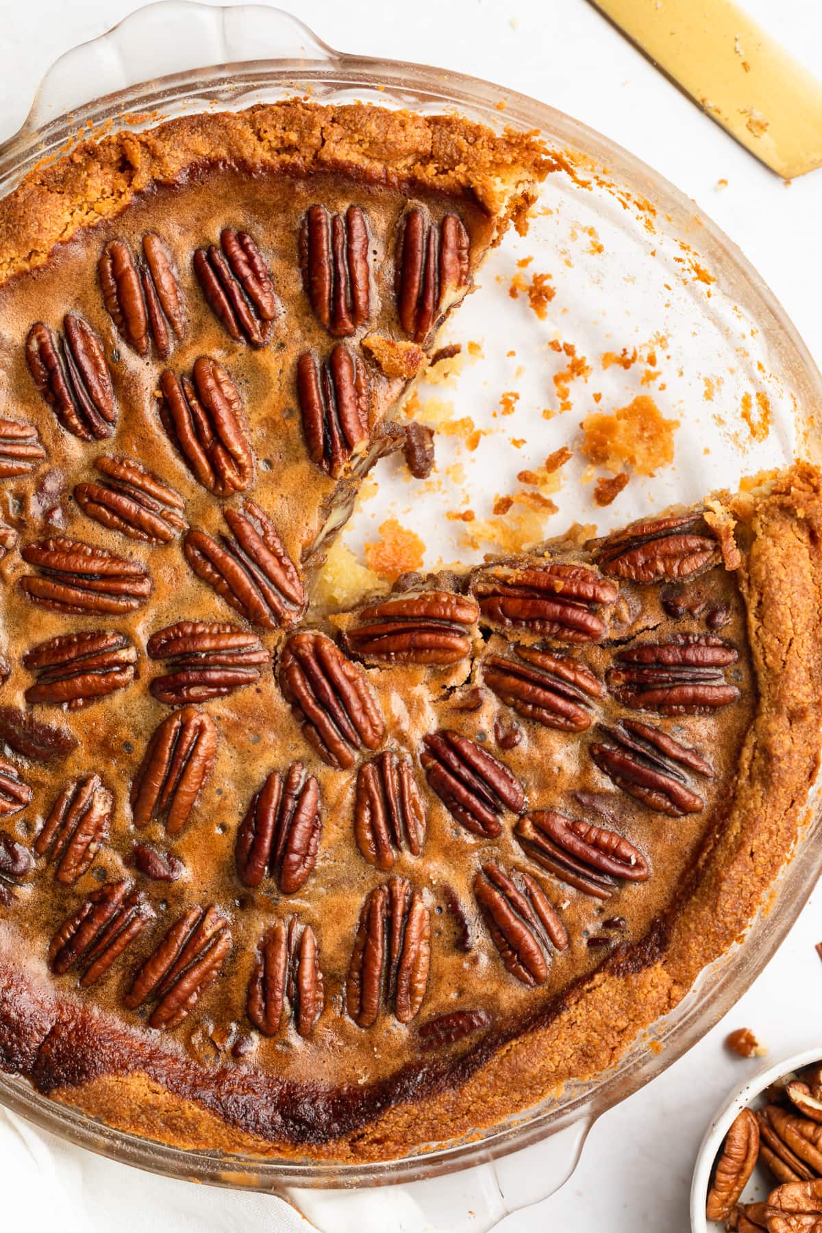 - ¡Tiene todos los elementos deliciosos que deseas en un pastel de nuez! Un relleno dulce y pegajoso se sienta dentro de una corteza mantecosa y desmenuzable. Este delicioso crujido no solo de las nueces, sino también de la corteza del pastel cetogénico es verdaderamente incomparable.