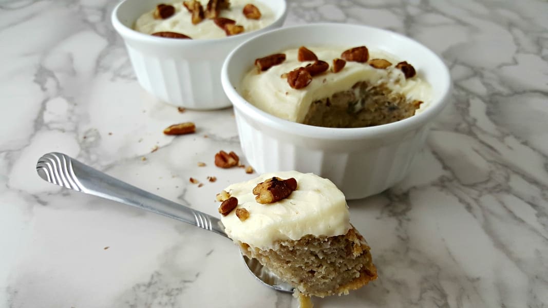 ¡Esta receta de pastel de plátano con glaseado de queso crema es increíble! Es húmedo, espeso y lleno de un enorme sabor a plátano cubierto con el glaseado perfecto de queso crema y nueces pecanas o picadas.