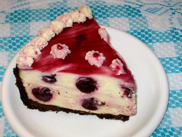 Colocar la mitad de la mezcla y la mitad de las cerezas sobre la base preparada. Repita con el resto de la mezcla y las cerezas. Vierta sobre la parte superior gruesa de la cereza, luego haga rodar suavemente la mezcla con un tenedor. Refrigere por 3 horas o toda la noche hasta que esté listo.