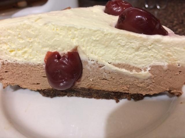 Coloca ⅓ de las cerezas sobre la base de galleta, unta con la mezcla de chocolate.