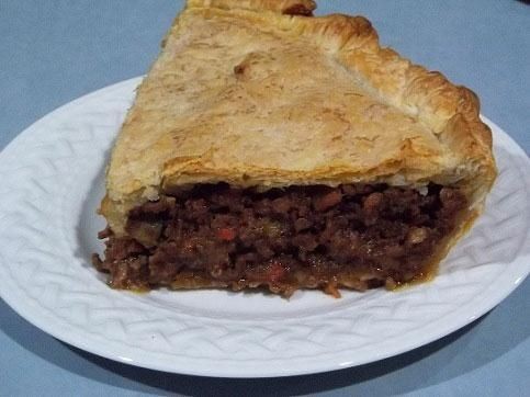 Coloque la mezcla de carne en la sartén y cubra con la última hoja de masa.