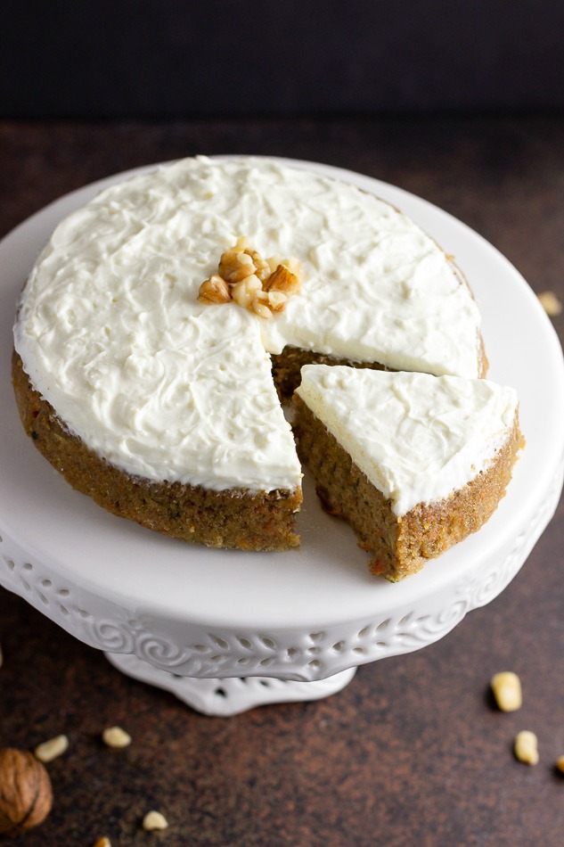 - Cuando el bizcocho esté completamente frío, congelarlo, espolvorearlo con nueces, cortarlo en rodajas y servir. Guarde tapado en el refrigerador hasta por 5 días.