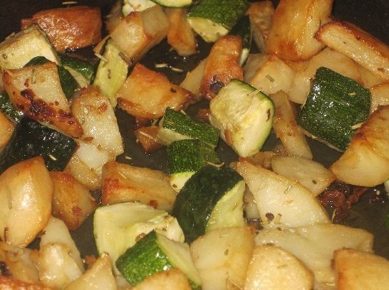 Agregue el calabacín y el romero y mezcle bien. Cocine por más de 12 minutos.