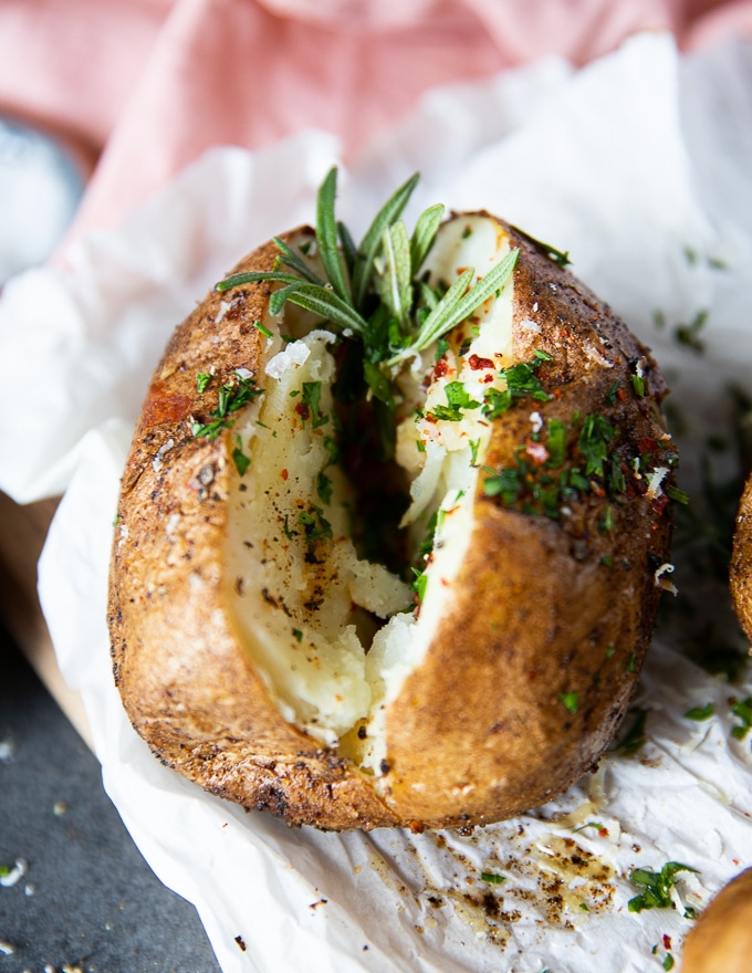 Si tienes una freidora, ¡debes probar esta papa al horno freidora! Piel súper crocante con un interior suave y esponjoso, ¡esta video receta de papas al horno con freidora será el mejor acompañamiento para tu plato principal! ¡Se puede cargar con coberturas y rellenos para una comida sola!