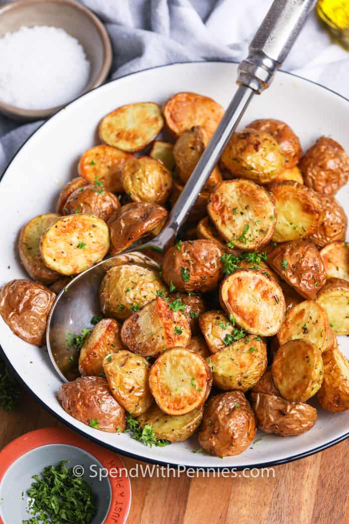 PATATAS ¡Cualquier papa funcionará muy bien! Me encantan las papas nuevas en esta receta, pero las papas al horno, Russet, Yukon Gold o Red Potatoes son excelentes opciones.