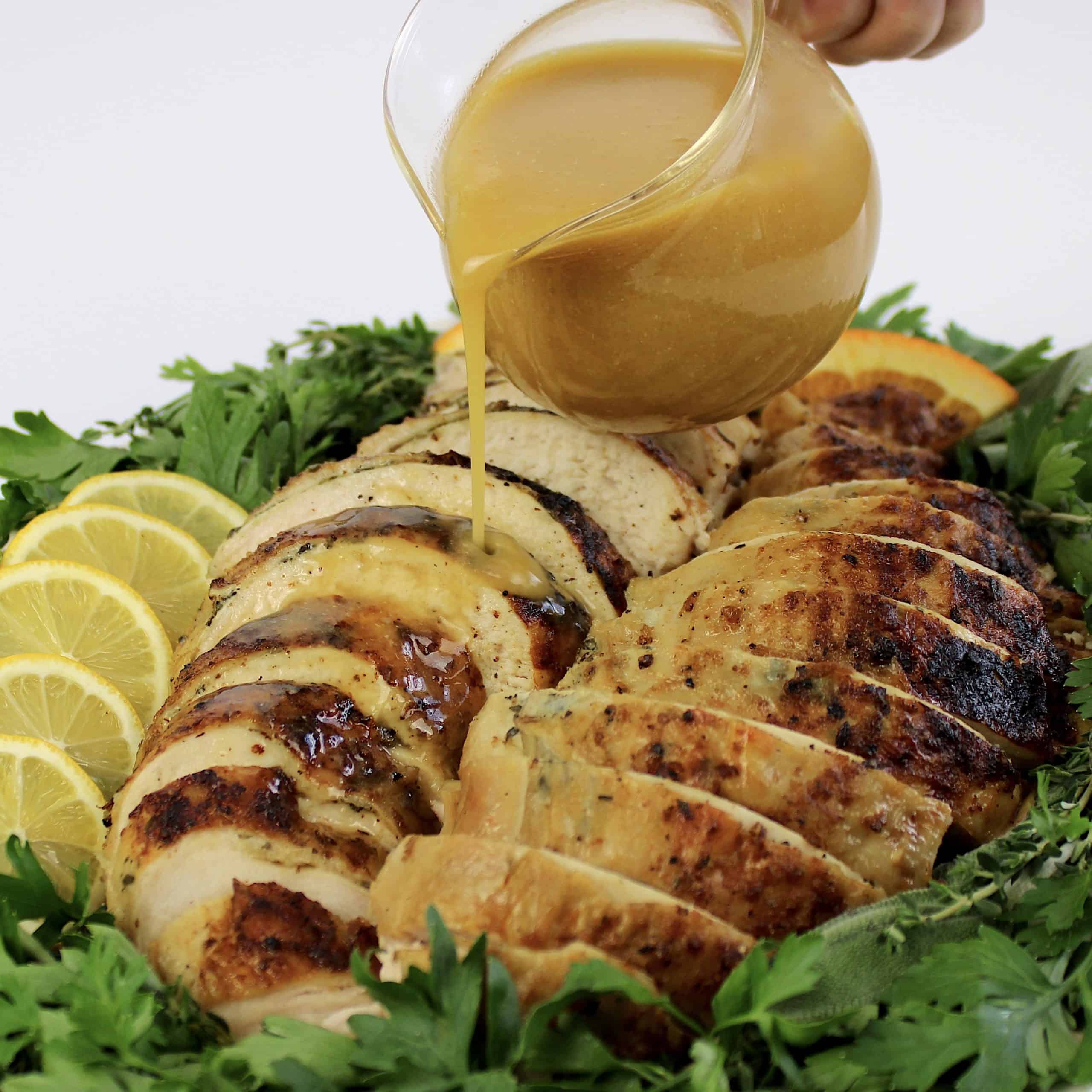 - Danos un descanso: El olor de esta receta de pavo te hará la boca agua. Entonces, cuando se acaba el tiempo de cocción, ¡puede ser tentador cortarlo de inmediato! ¡No haga eso! Deje reposar durante al menos 15-20 minutos antes de esculpir. Esto permitirá que el jugo se redistribuya por toda la pechuga.