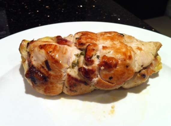 Corta cada trozo de pechuga de pollo por la mitad horizontalmente y ábrelo, pero no lo cortes por completo.