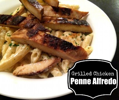 Penne Alfredo De Pollo A La ParrillaIngredientesPechuga de pollo marinada a la parrilla (nos encanta esta, esta o esta marinada) 16 onzas de penne, cocinada al dente 6 cucharadas de mantequilla sin sal 1 cebollín picado 1 taza de crema 1 taza de queso parmesano rallado (tipo olla verde) 1/2 cucharadita de sal 1 /4 cucharaditas de perejil negro para decorardireccionesCuece la penne en agua hirviendo con sal hasta que esté al dente. Escurra en un colador, pero reserve 1/4 taza de agua para los fideos. Mientras se cocina la pasta, derrita la mantequilla en una sartén mediana a fuego medio-alto. Agregue los chalotes y saltee hasta que estén suaves. Añadir la nata espesa y llevar a ebullición. Reduzca a fuego medio y cocine, revolviendo con frecuencia, hasta que la salsa se haya reducido ligeramente, aproximadamente 5 minutos. Retire del fuego y agregue el parmesano, la sal, la pimienta y el líquido de cocción reservado, mezcle. Añadir los macarrones y mezclar. Colocar la masa con la pechuga de pollo troceada encima. ¡Decora con perejil! ¡GUSTAR!