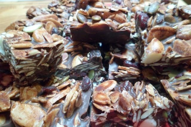 Vierta la mezcla en el molde forrado y refrigere durante la noche. Cortar en cuadrados y colocar en un recipiente hermético y refrigerar.