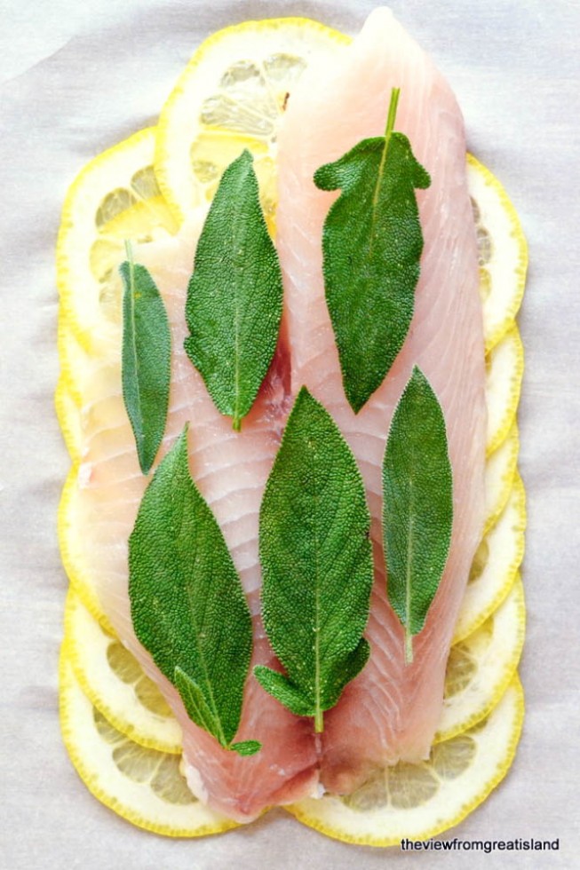 Roberta usa salsa de sal. Espolvoreé con sal marina y pimienta, luego cubrí el pescado con hierbas frescas.