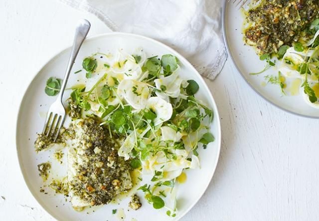 En un tazón pequeño, mezcle los ingredientes para formar una pasta espesa. Extienda la corteza de nuez de macadamia sobre el pescado, presionando uniformemente.