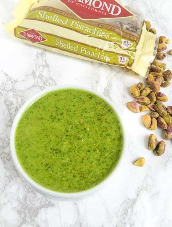 Un delicioso giro en el clásico italiano, a su familia le encantará este pesto de limón, pistacho y albahaca. ¡Sirva sobre pasta, rocíe con carne o use como aderezo para ensaladas!