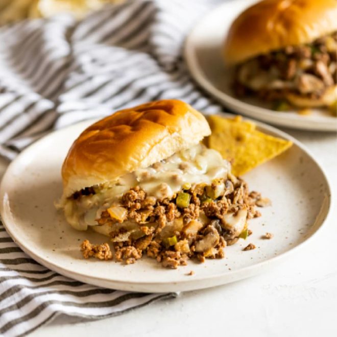 - Bollos pequeños deslizantes para Philly Cheesesteak Sloppy Joes (Sip)