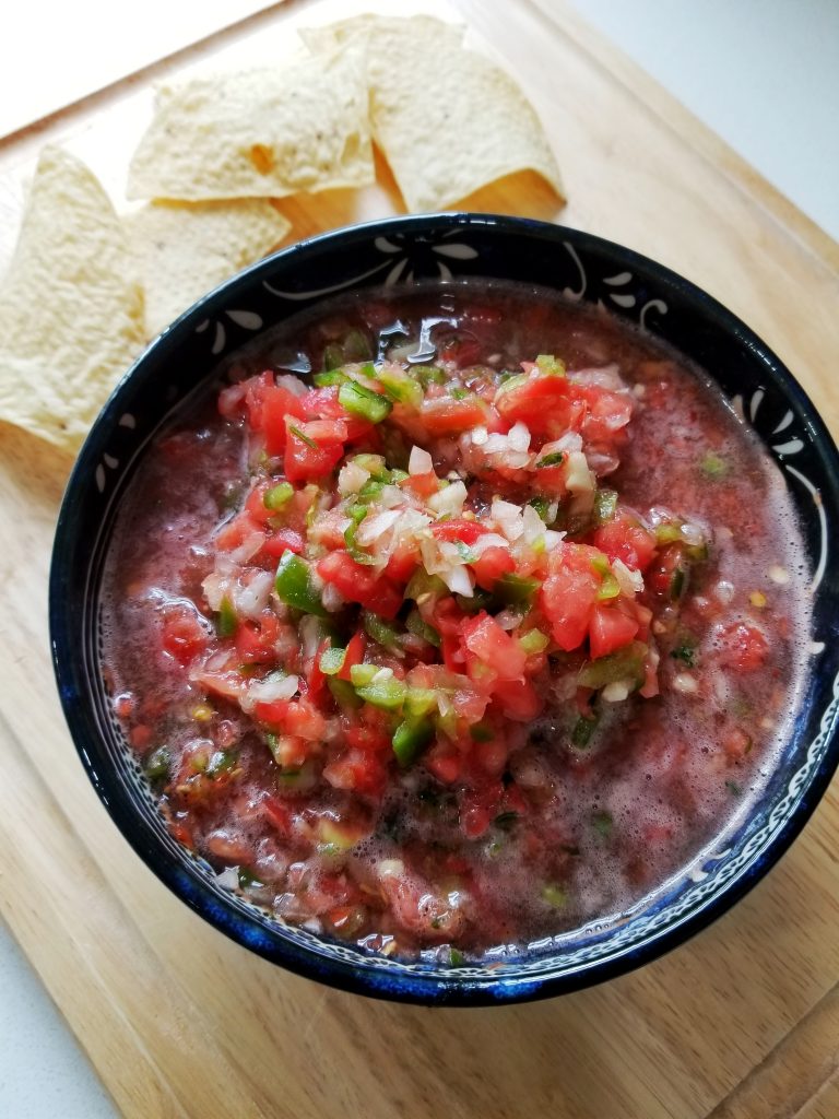 Una fiesta no es fiesta sin patatas fritas y salsa. siempre me sorprendo [read: shocked] cuantos ingredientes extra y dañinos tiene la salsa casera, por eso siempre hago la mia. Cuanto más cocino y más aspiro a enseñar a otros a cocinar, más me asombro de cómo la gente no se da cuenta de lo simples y fáciles que son sus comidas favoritas. Pico de Gallo es uno de ellos.