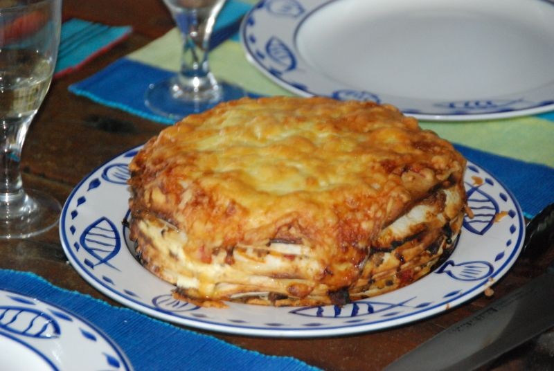 Repita con la crema agria, la carne picada y el queso, formando unas 8 capas.