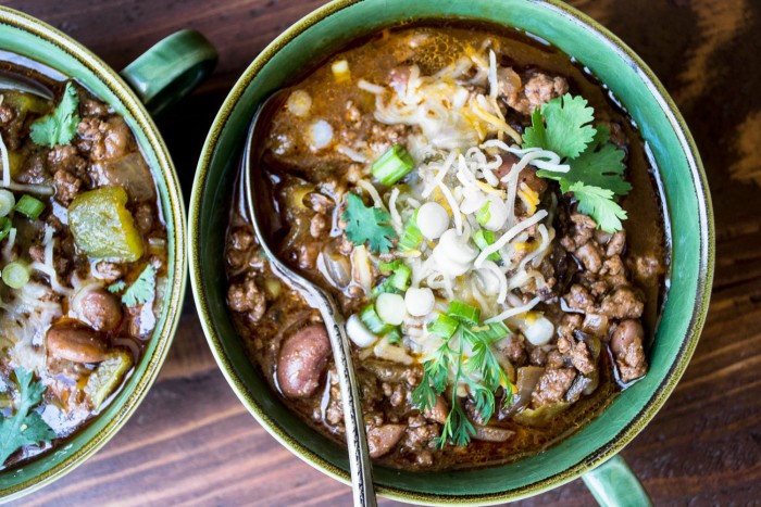 Para hacer que este chile sea especial, cargué pimientos Hatch.