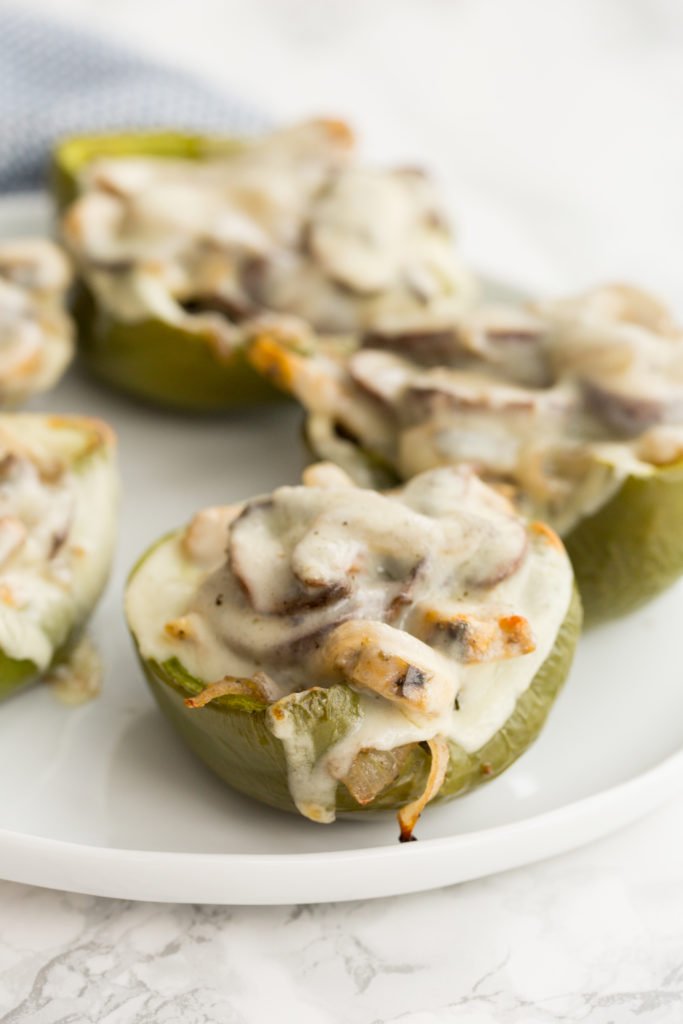 Estos pimientos rellenos de cheesesteak aparecieron originalmente en mi libro de cocina Inspirationalized & Beyond y están hechos de la manera tradicional, con carne (filete, para ser exactos). ¡Tienen todos los sabores de un cheesesteak con queso, sin pan, para aquellos que quieren una alergia al gluten o aquellos que son bajos en carbohidratos o simplemente quieren algo divertido y nuevo!