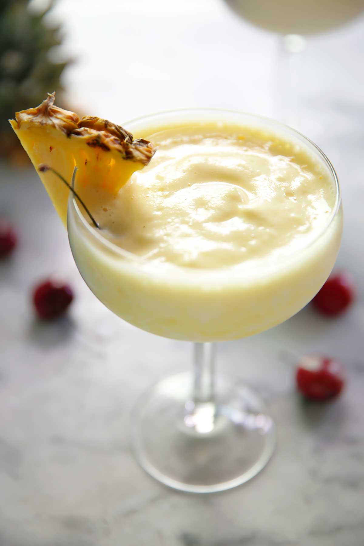 Piña Colada con cuatro ingredientes iluminados