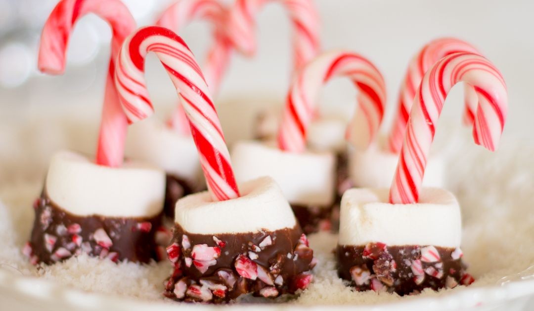 También puede usar bastones de caramelo verdes o de arcoíris para esta receta.