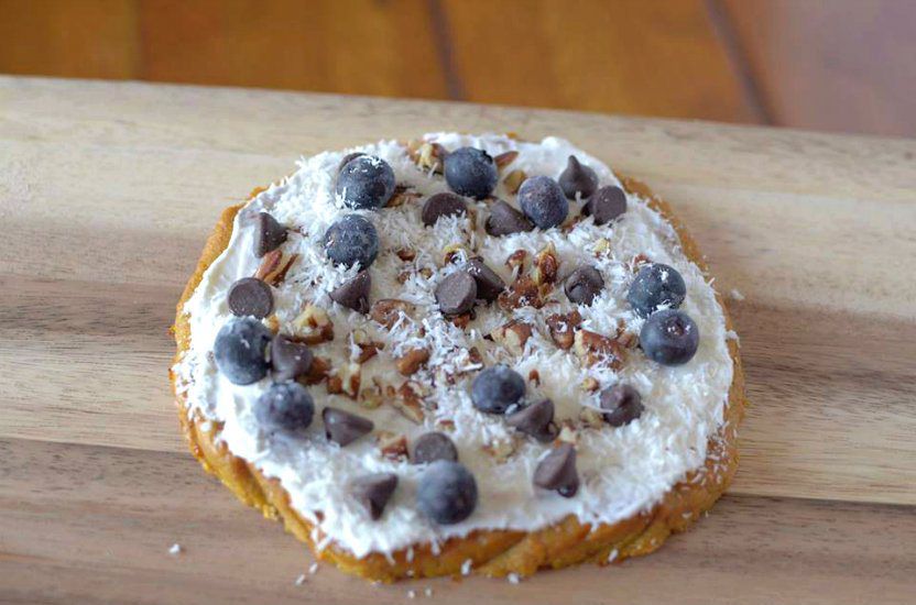 Paleo Pane Zucca Breakfast Pizza se sirve en una porción, ¡así que no hay forma de compartir! —Bethany DiCARlo