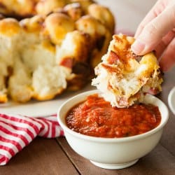 Porciones: 4 a 6 porciones Preparación: 1 hora Hornear 1 hora Total: 2 horas Un delicioso pan de mono cargado de todos los increíbles sabores que vienen en una pizza de pepperoni.