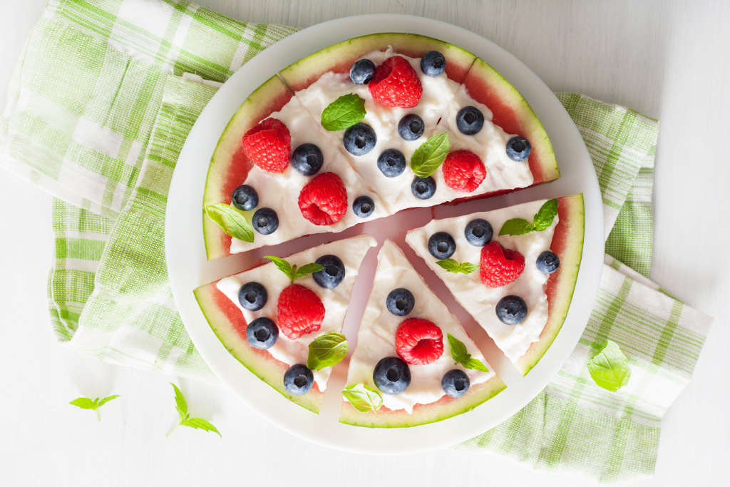 La pizza de sandía es un postre divertido y es un gran giro en lo que consideramos pizza tradicional. No es picante, es un postre que se sirve frío. Además, es popular entre niños y adultos por igual y se puede personalizar según sus preferencias de frutas.