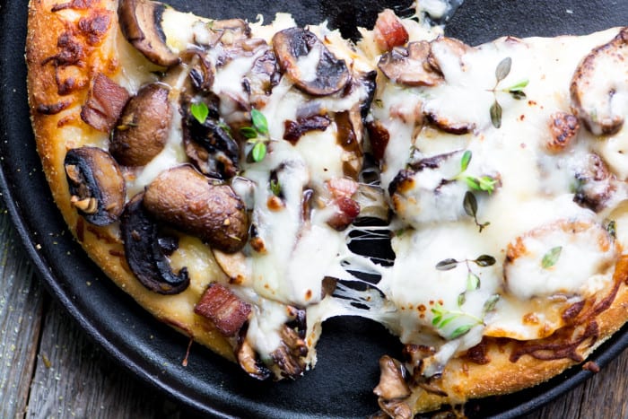 Esta pizza rápida de champiñones y jamón es una pizza calentita y acogedora que puedes hacer a tu antojo porque está hecha con… espera… ¡masa fría!