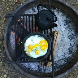 Como ves, son pocas comidas y hay repeticiones, así que no tienes que llevar muchos ingredientes. Gran parte del trabajo de preparación se hace en casa, lo que hace que cocinar en el campamento sea muy fácil. A continuación se muestra la lista de ingredientes e instrucciones para el trabajo de preparación y cocción.