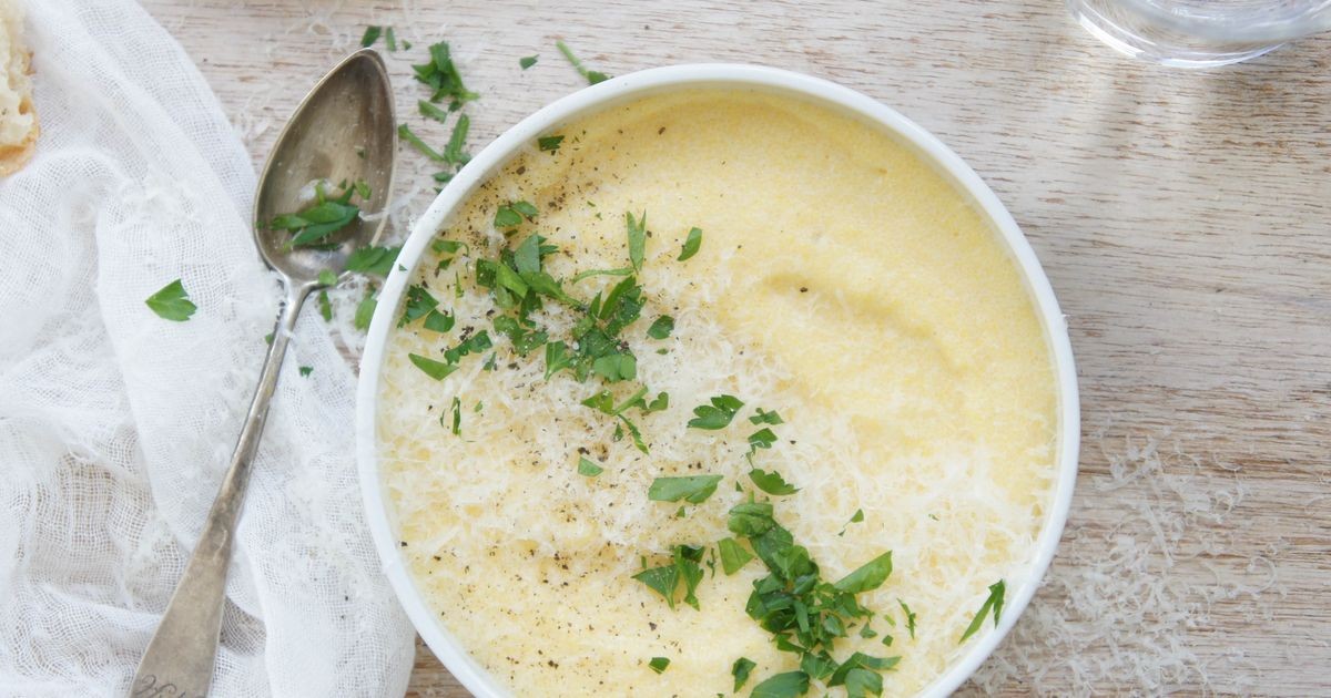 Agregue la mantequilla, el queso parmesano, el perejil y los condimentos a la polenta, revolviendo hasta que el queso se derrita.